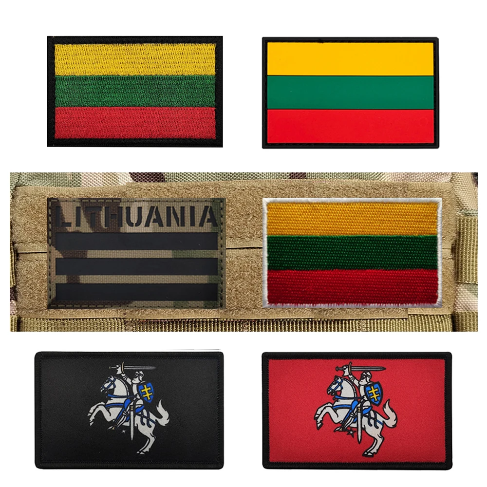 Écussons brodés du drapeau de Lituanie imprimés, drapeaux lituaniens réfléchissants, bandeaux tactiques en caoutchouc PVC, appliques décoratives, badges