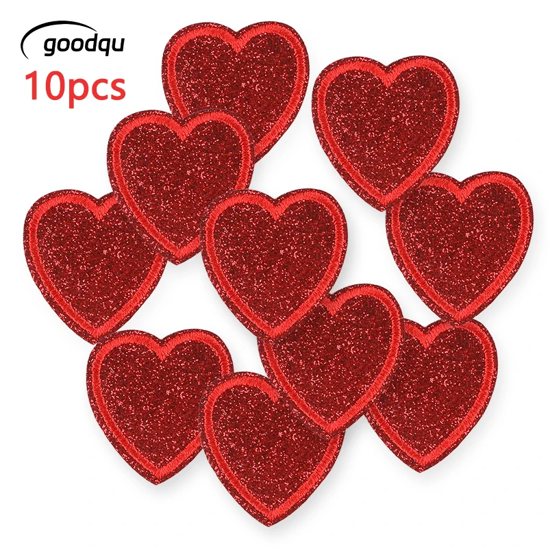 Lot de 10 écussons thermocollants en forme de cœur à paillettes pour vêtements, broderie, autocollants thermiques, pour vestes, tissus, DIY pour enfants, Naszywka