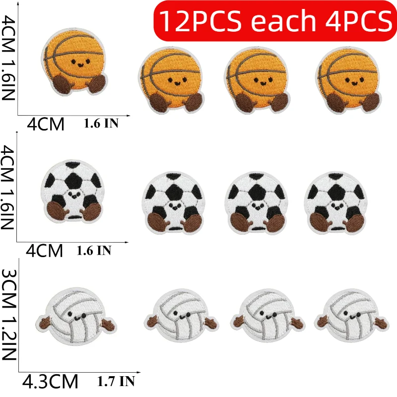 Différents modèles de sport patchs 10/12 pièces vente en gros fer sur broderie dessin animé Badminton basket-ball Football Tennis de Table