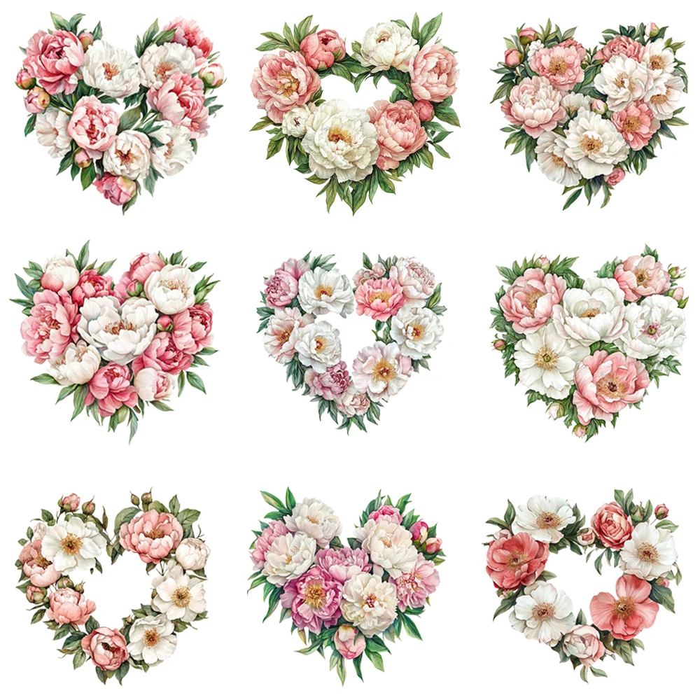 15cm dessin animé aquarelle pivoines coeur fleur fer sur transfert autocollants bricolage DTF transfert de chaleur autocollant T-shirt vêtements décalcomanies