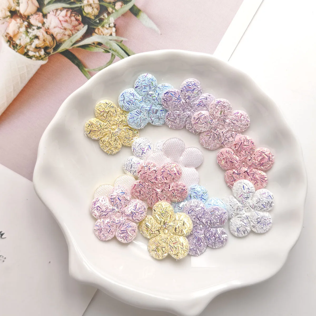 40 pièces brillant paillettes fleur rembourré Appliques ornements pour bricolage à la main pinces à cheveux chapeaux vêtements patchs décorations