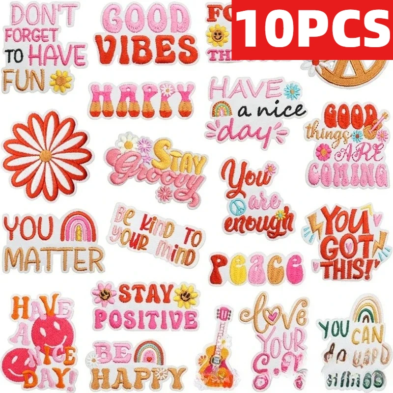 10 pièces de patchs brodés en tissu avec mots inspirants en anglais, pour décoration et motivation, motif 'Aime-toi toi-même'