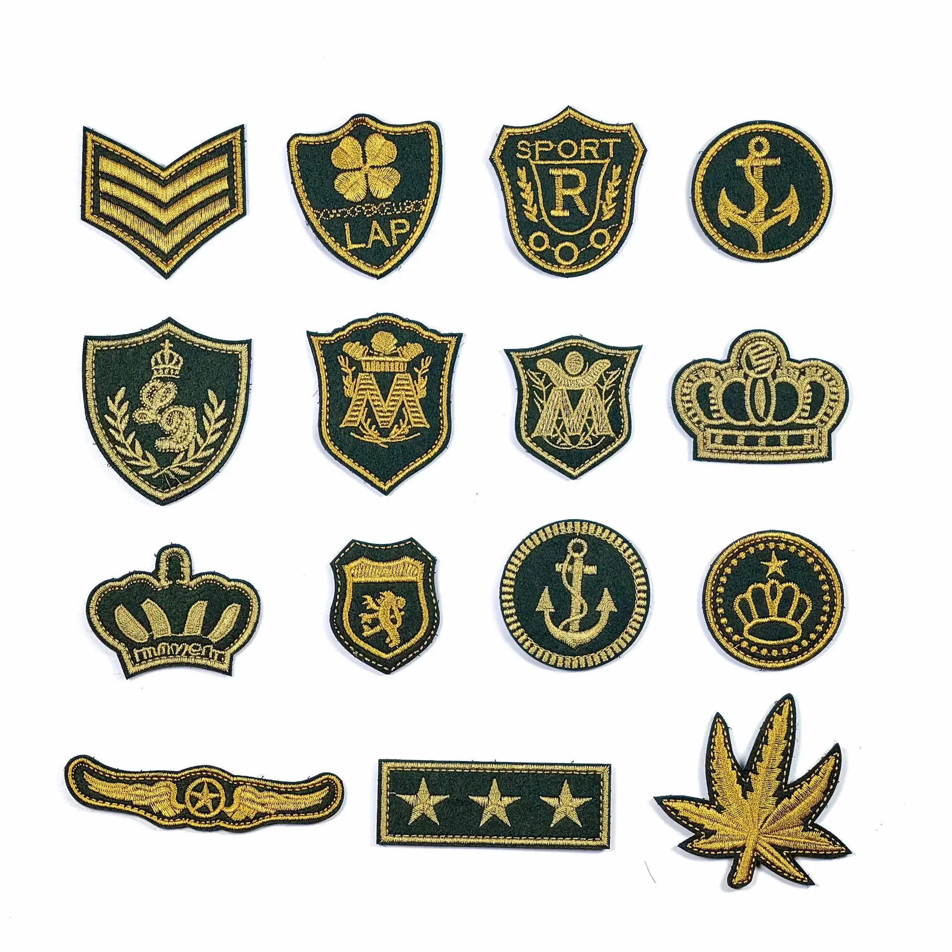 Patch à crochet et boucle brodé doré, Badge de vol étoile ailée, rayures militaires, lettre de Sport, bouclier, emblème, couronne, ancre, Logo pour casquette