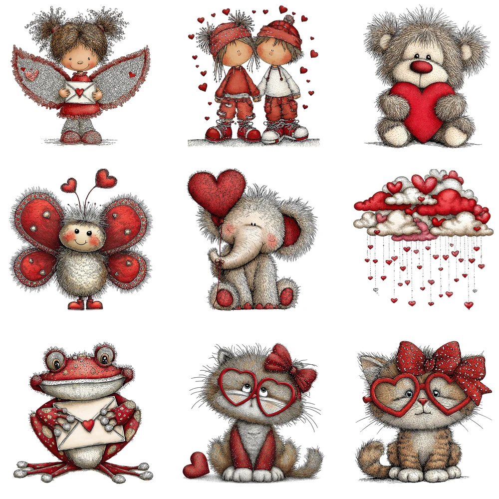 15cm fantaisiste saint valentin ours chat escargot grenouille fer sur transfert autocollant bricolage DTF transfert de chaleur autocollant T-shirt vêtements décalcomanies