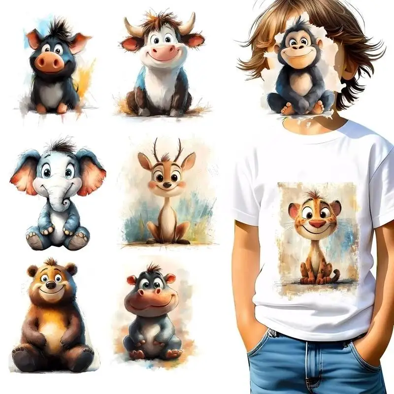Autocollants de transfert de chaleur pour enfants, éléphants mignons, vaches, singes, fer à repasser DTF, patchs pour vêtements pour enfants