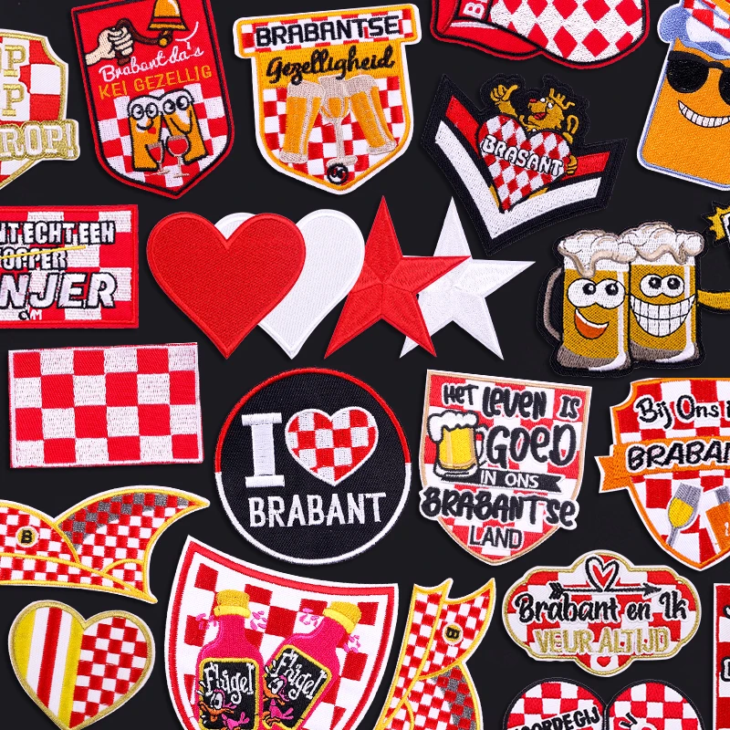 Patchs de broderie de bière avec drapeau Noord-Brabant de carnaval des pays-bas pour vêtements, patchs à repasser sur vêtements, Badges appliqués de couture