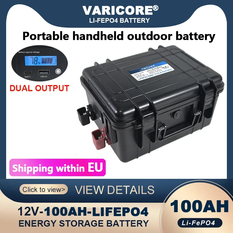VariCore12V 100Ah outdoor battery LiFePO4 convenient carrying case