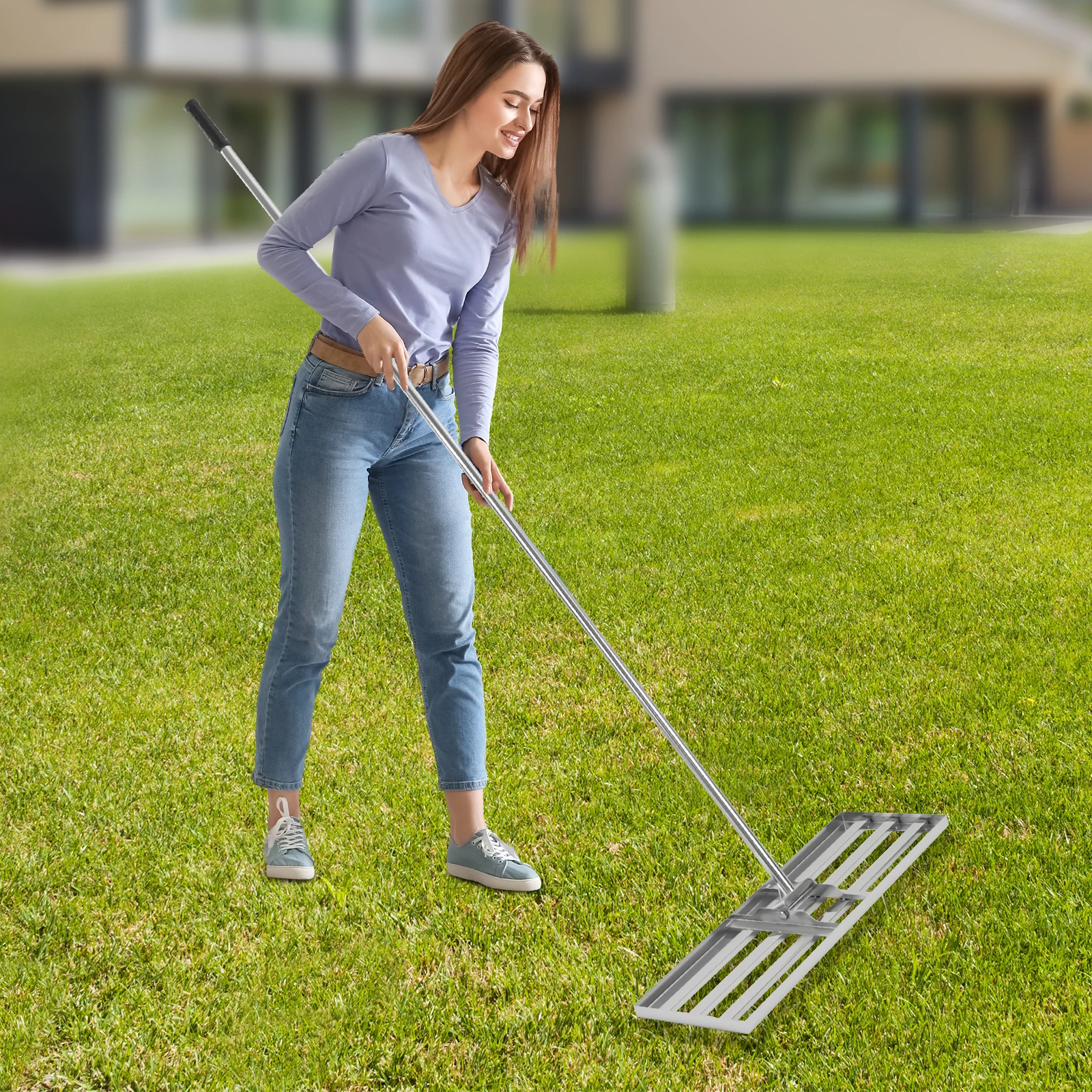 Râteau de nivellement de pelouse, outil de nivellement de sol et de pelouse 75x25cm, niveleur de pelouse en acier inoxydable pour l'entretien de la cour, entretien durable de la pelouse