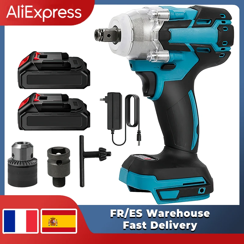 Clé à chocs électrique sans fil 4 vitesses 1200 N.M, perceuse électrique sans fil 1/2 pouce, compatible avec batterie Makita 18V
