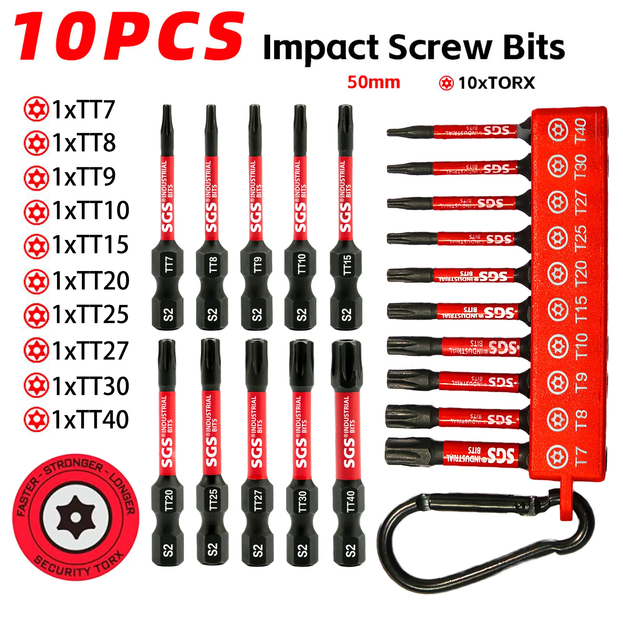 Jeu de tournevis à chocs en forme d'étoile creuse, en acier industriel S2, résistant à la rouille et aux chocs, avec manchon en caoutchouc et conception à clipser, facile à transporter, 10 pièces, 50mm