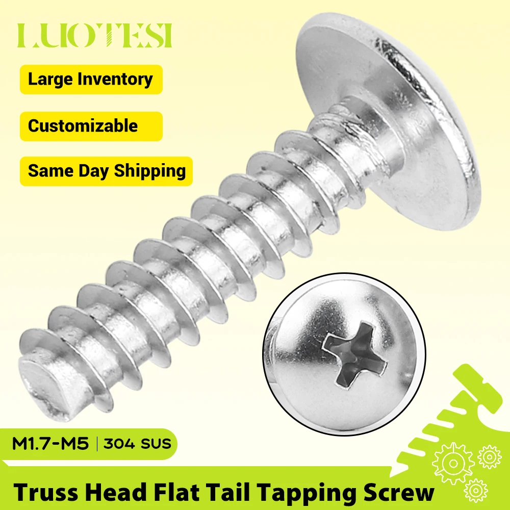 Vis autotaraudeuse à tête cruciforme et queue plate en acier inoxydable 304 M1.7 M2 M2.3 M2.6 M3 M3.5 M4 M5 M6 Vis à tête plate ronde Phillips
