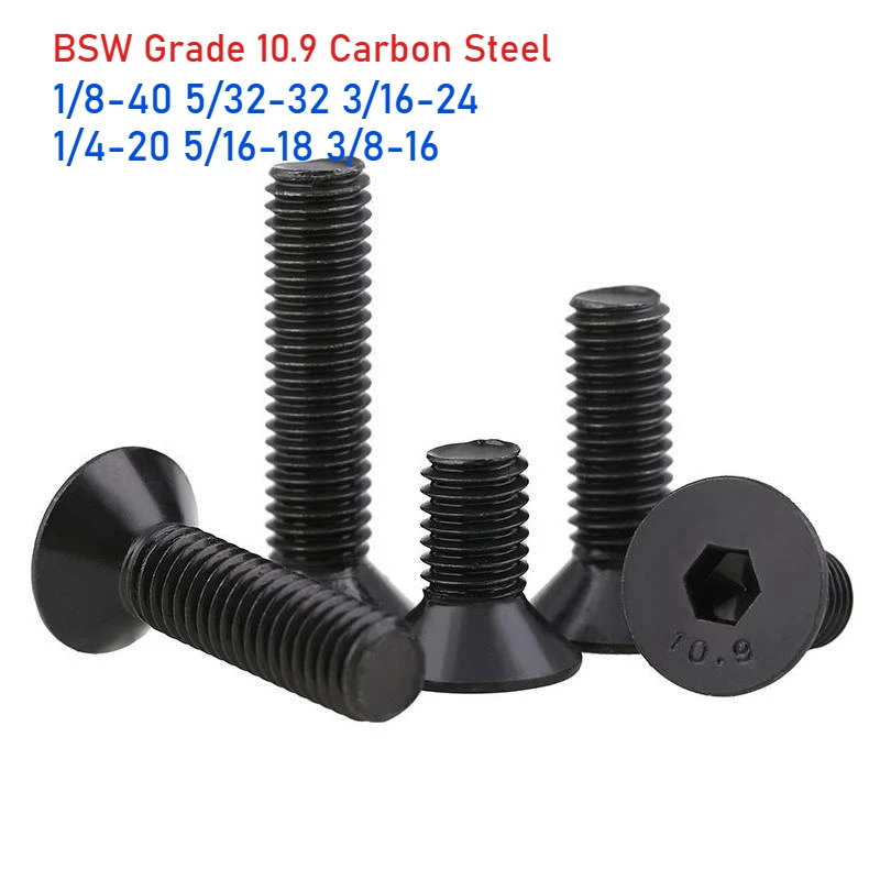 BSW 1/8 5/32 3/16 1/4 5/16 3/8 Grade 10.9 pouces en acier au carbone boulon à vis à tête fraisée plate
