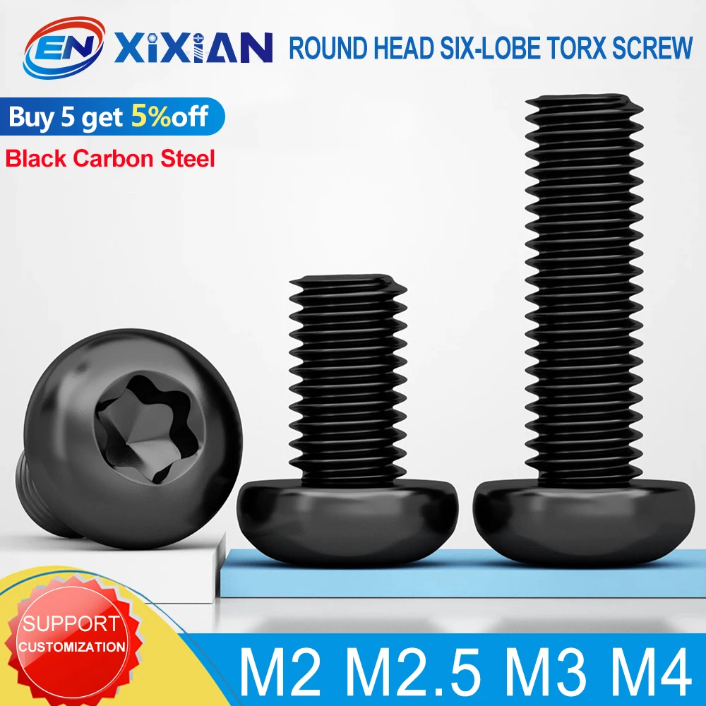 Vis à tête ronde Torx à Six lobes M2 M2.5 M3 M4, qualité 10.9, vis à tête bouton Torx noire, longueur 4-20mm pour boulon de machines 30 à 100 pièces