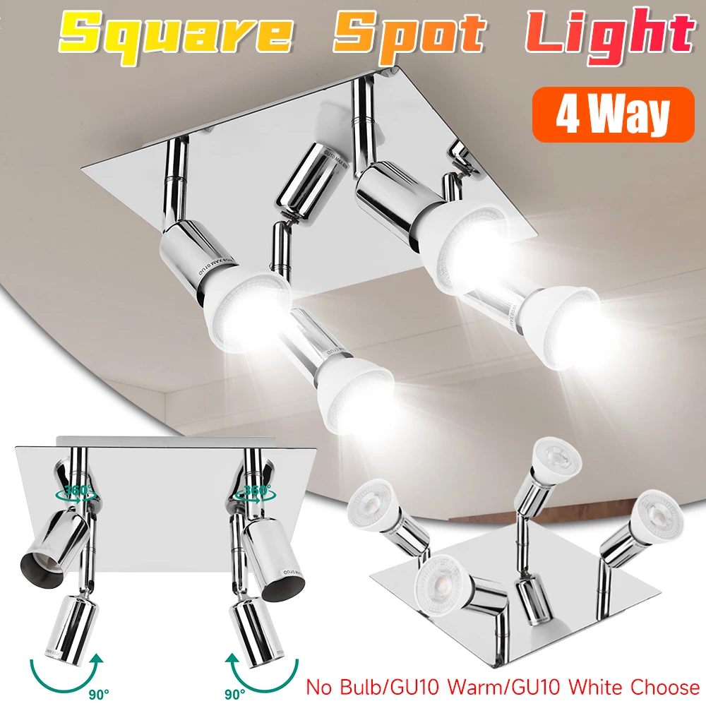 Spot carré plafonnier 4 ampoules GU10 4 voies LED plafonnier Angle réglable lustre lampes pour la décoration intérieure