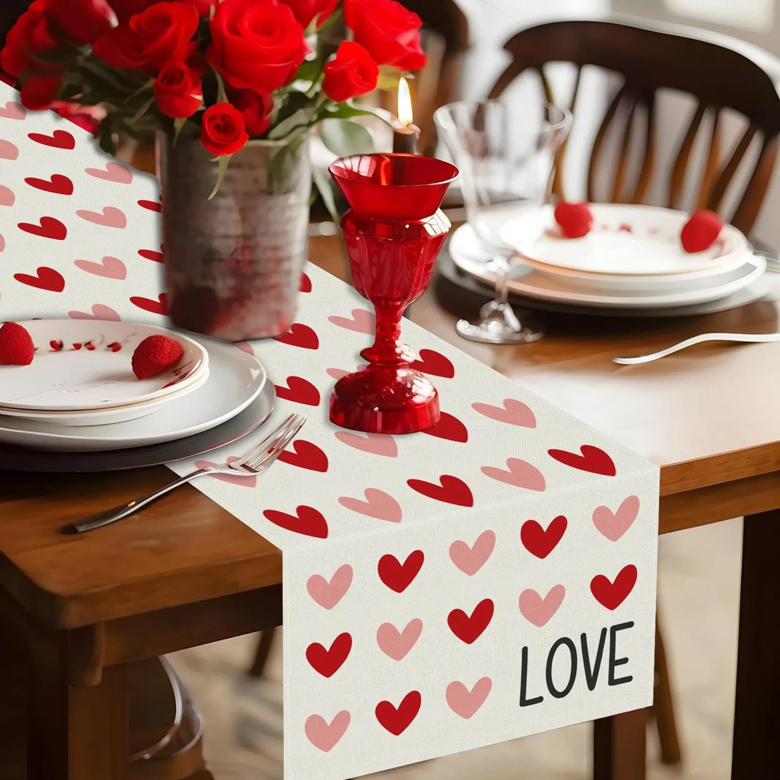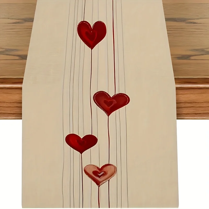 Chemins de table en lin Love Coussins pour la Saint-Valentin, écharpes de commode, décor réutilisable, cuisine, salle à manger, chemin de table, décoration de fête