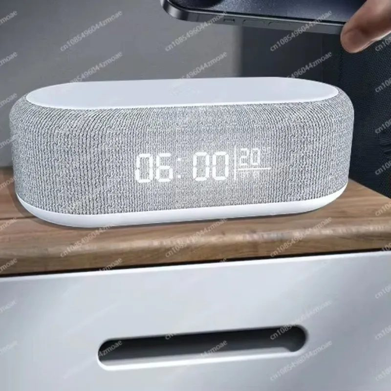 Enceinte Bluetooth avec station de charge rapide 15W, chargeur sans fil, veilleuse et réveil, tout-en-un