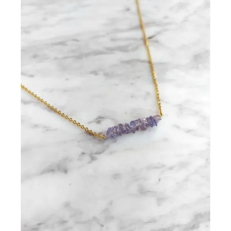 Collier en pierre brute de tanzanite : pierre précieuse violet clair, plaqué or 14 carats