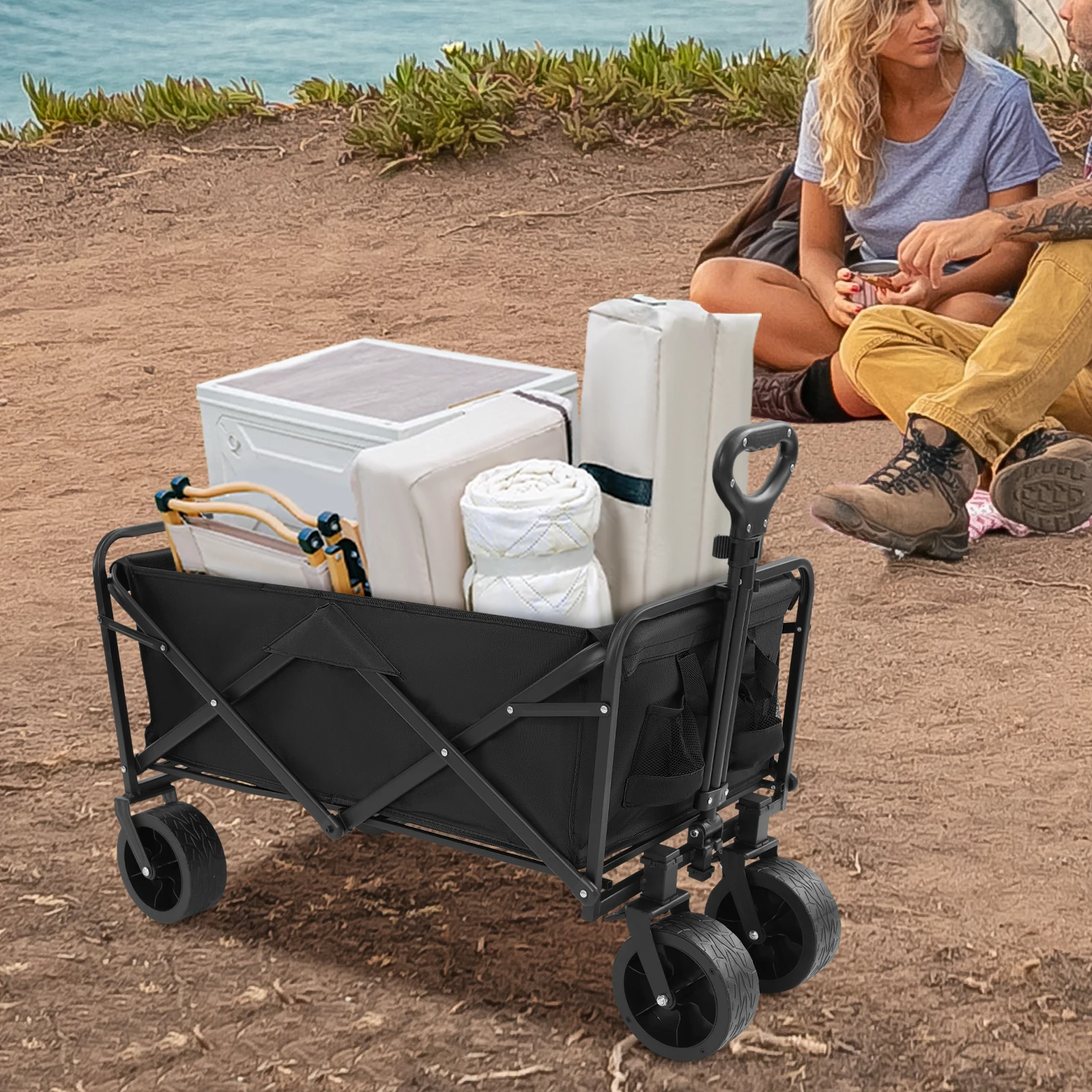 35,24 * 20,08 pouces Tragen & Viserstellbares Schwarz Freistehend Klapphandwagen Klappwagen Für Freien Strand Garten