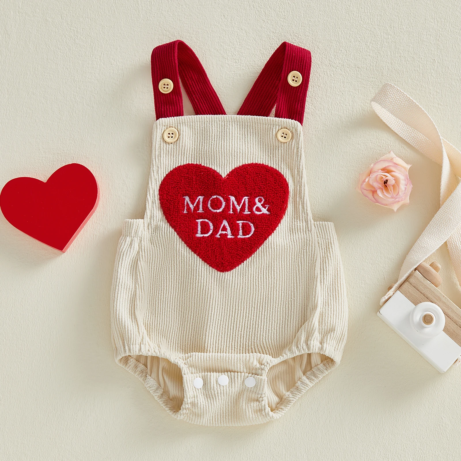 Barboteuse sans manches pour nouveau-né garçon et fille, pour la saint-valentin, col carré, lettres en forme de cœur brodées, body à bulles