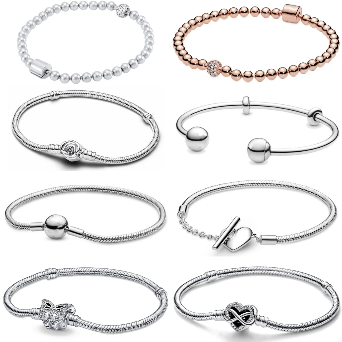 Bracelet à breloques en argent Sterling 925 pour femmes, breloque papillon Rose perle, mode originale, bijoux à bricoler soi-même, accessoires cadeau