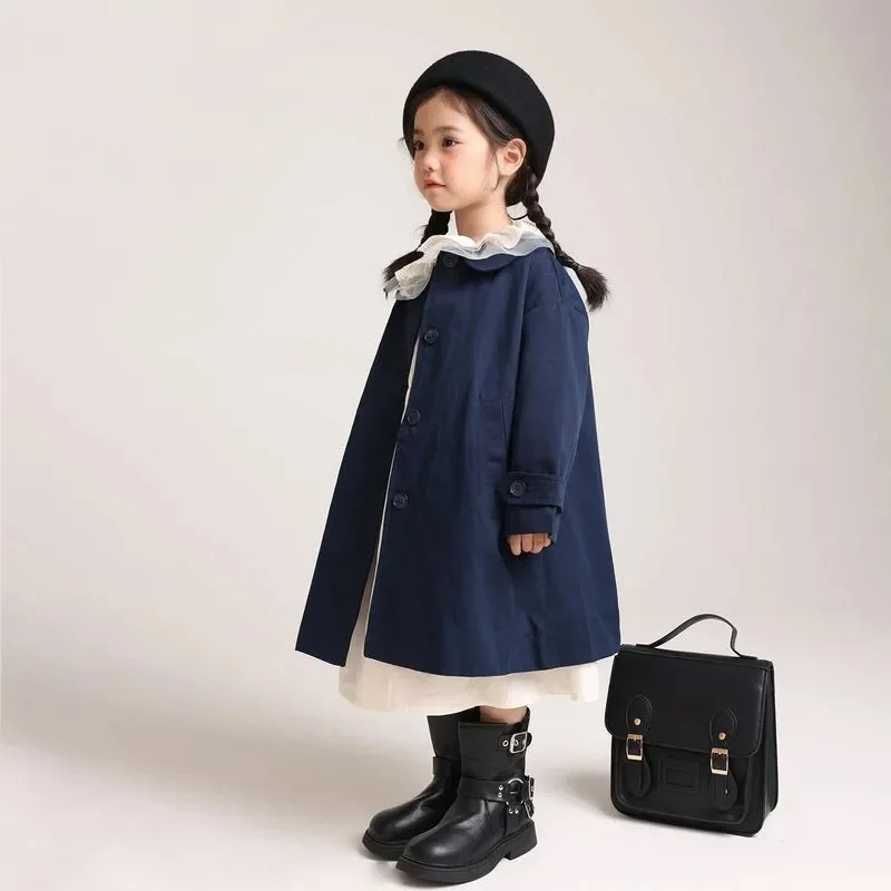 Tralike-Coupe-vent de longueur moyenne pour fille, style britannique, décontracté, printemps, automne, nouveau bébé, col adt turn dwon, 2024