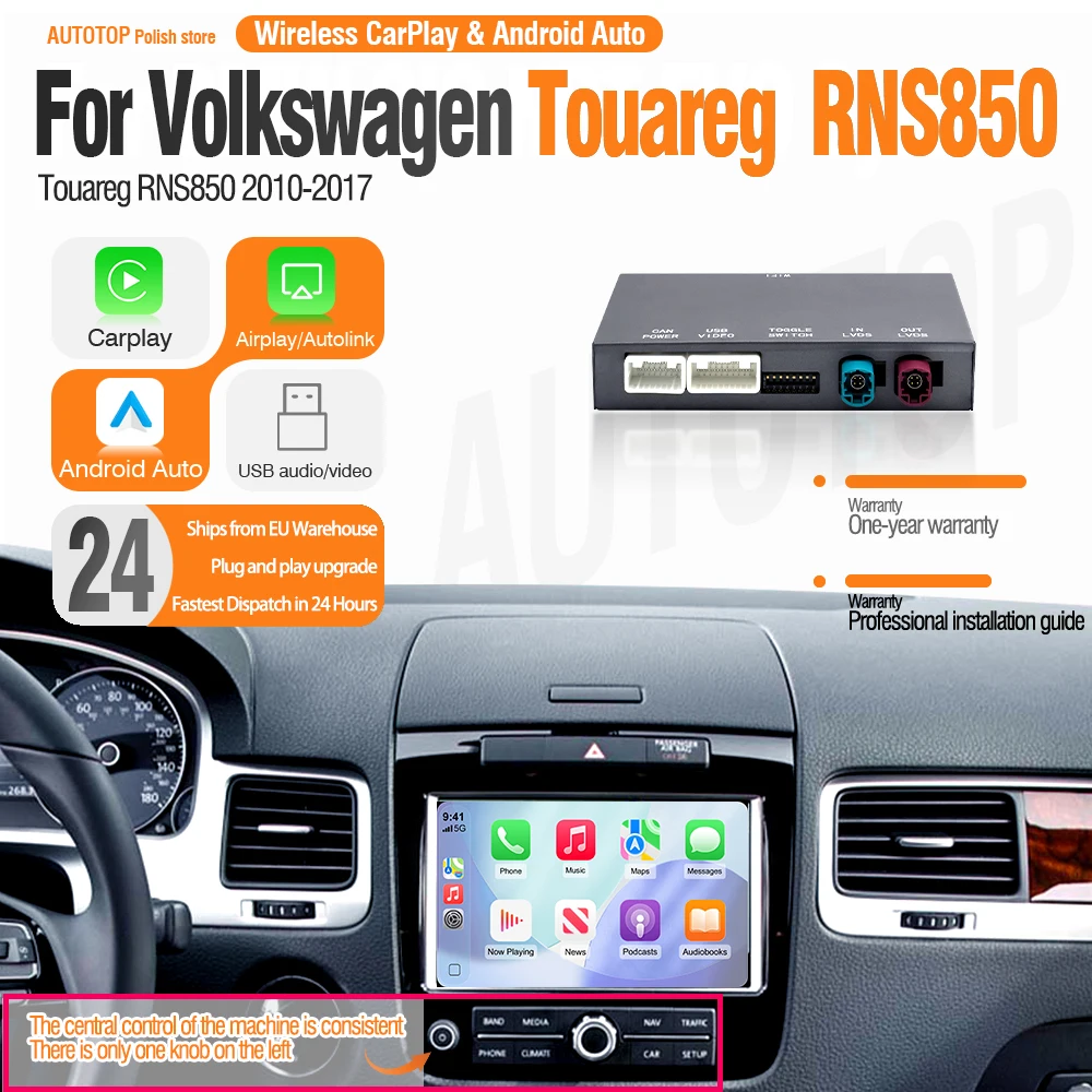 AUTOTOP CarPlay sans fil Android Auto pour Volkswagen VW Touareg RNS850 2010-2018 Mirror Link AirPlay Bluetooth GPS Navigation
