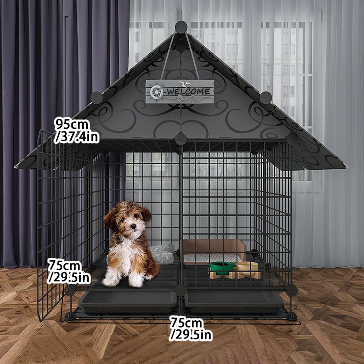 Villa d'intérieur pour chien, avec toilettes, abri pour petits chiens, pour chiens de poméranien et en peluche, Cage familiale pour animaux de compagnie avec plateau