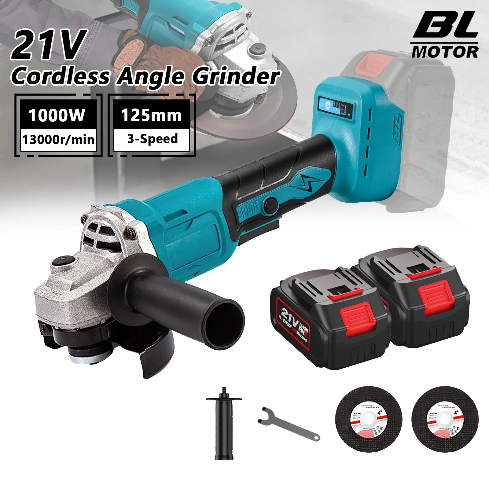 Meuleuse d'angle sans fil au lithium-ion 125 mm 1000 W 3 vitesses compatible avec la batterie Makita, outil électrique pour le meulage, la coupe et le travail du bois
