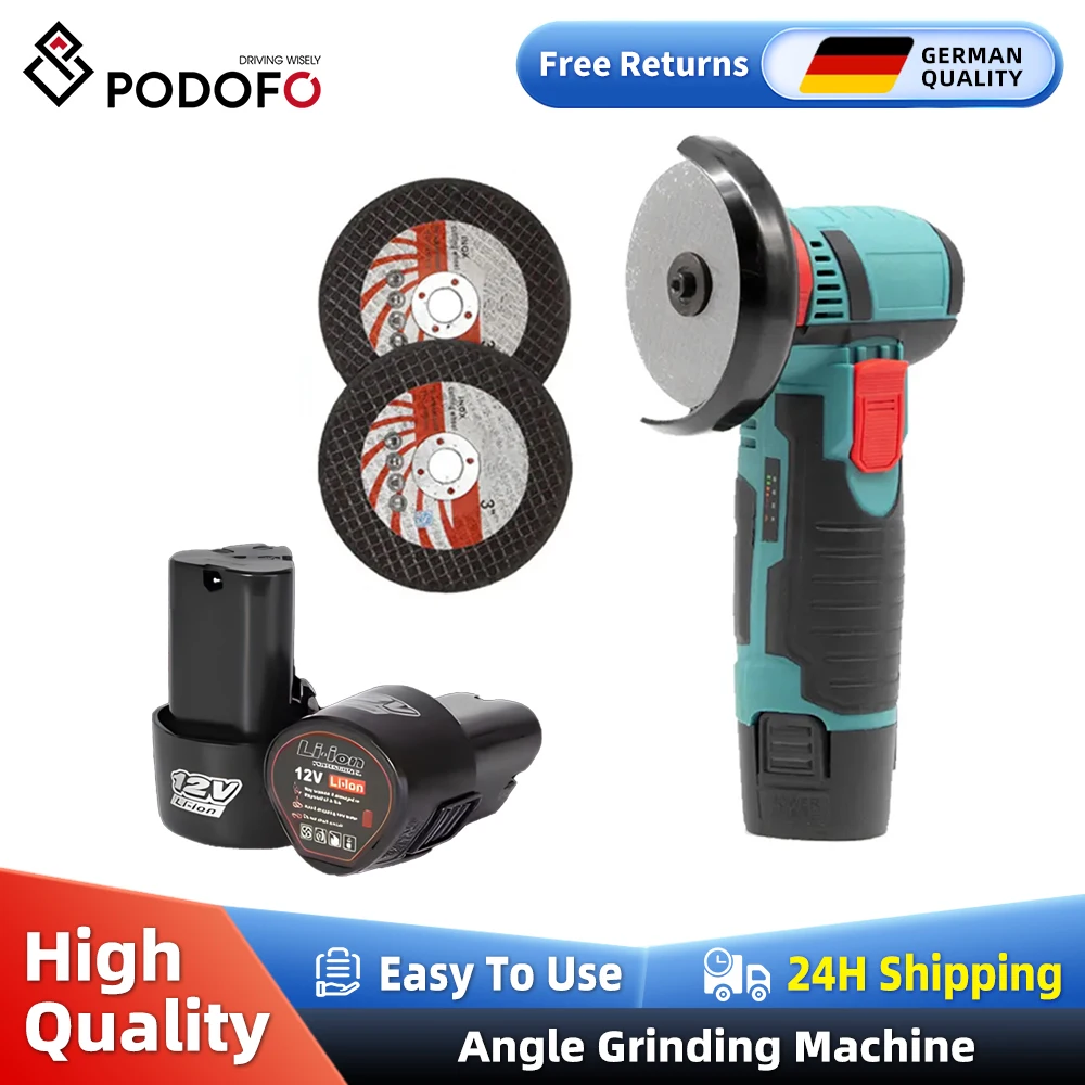 Podofo 100W Mini Meuleuse d'angle rechargeable sans fil à batterie au lithium, outil de découpe et de meulage