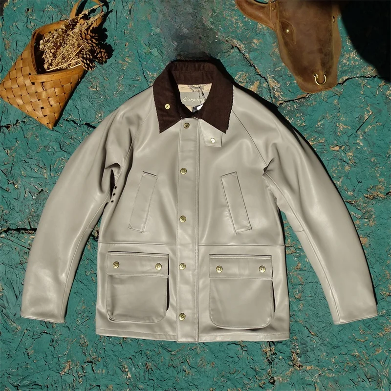 Veste en cuir véritable en peau de mouton souple pour homme, style chasse britannique, coupe ample, décontractée, mode jeune, fermeture éclair longue