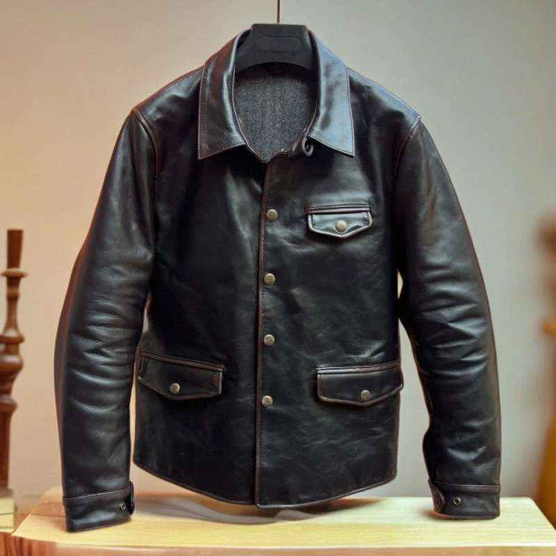 Veste en cuir marron des années 1930 pour hommes, changement de document de mode, peau de vache naturelle cirée à l'huile, manteau masculin, vêtements d'automne et d'hiver, M474