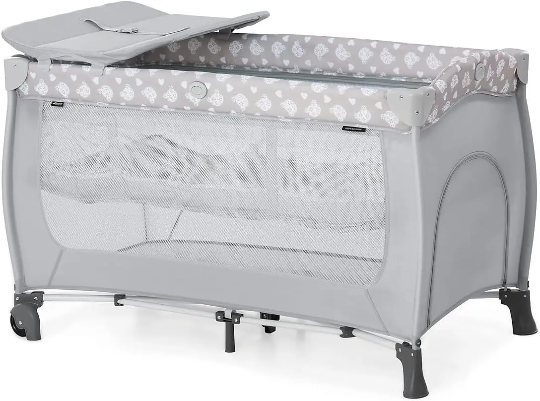 N Play Center, inklapbaar campingbedje vanaf 15 kg, bodemverhoger, verschoonblad, wielen, zijopening, 120 x 60 cm - gris peluche