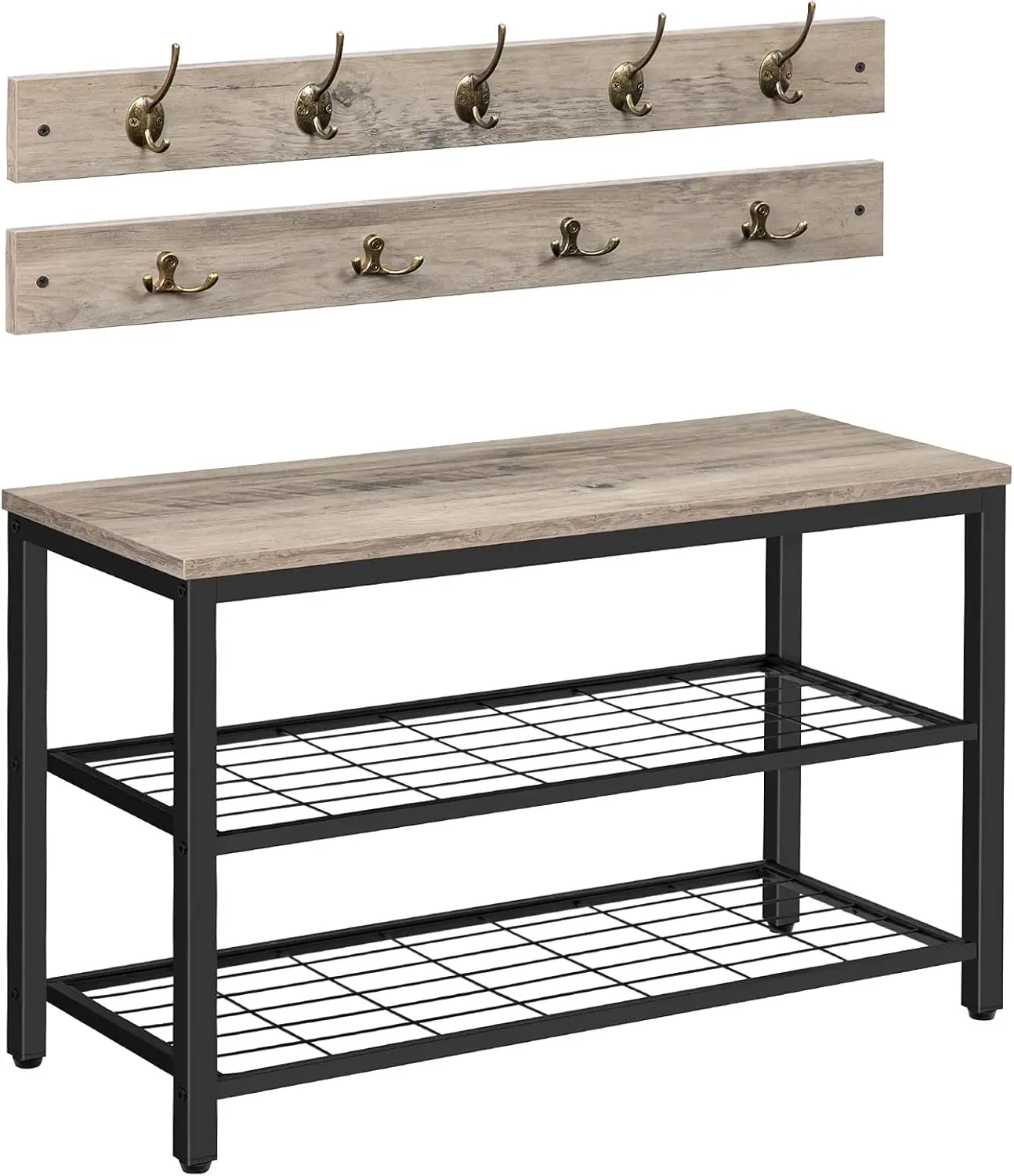 Ensemble kapstok schoenenrek, garderobe met schoenbank, schoenenrek met zitting, kledingrek met 9 haken, bankje, 2 rasterplanken, rui
