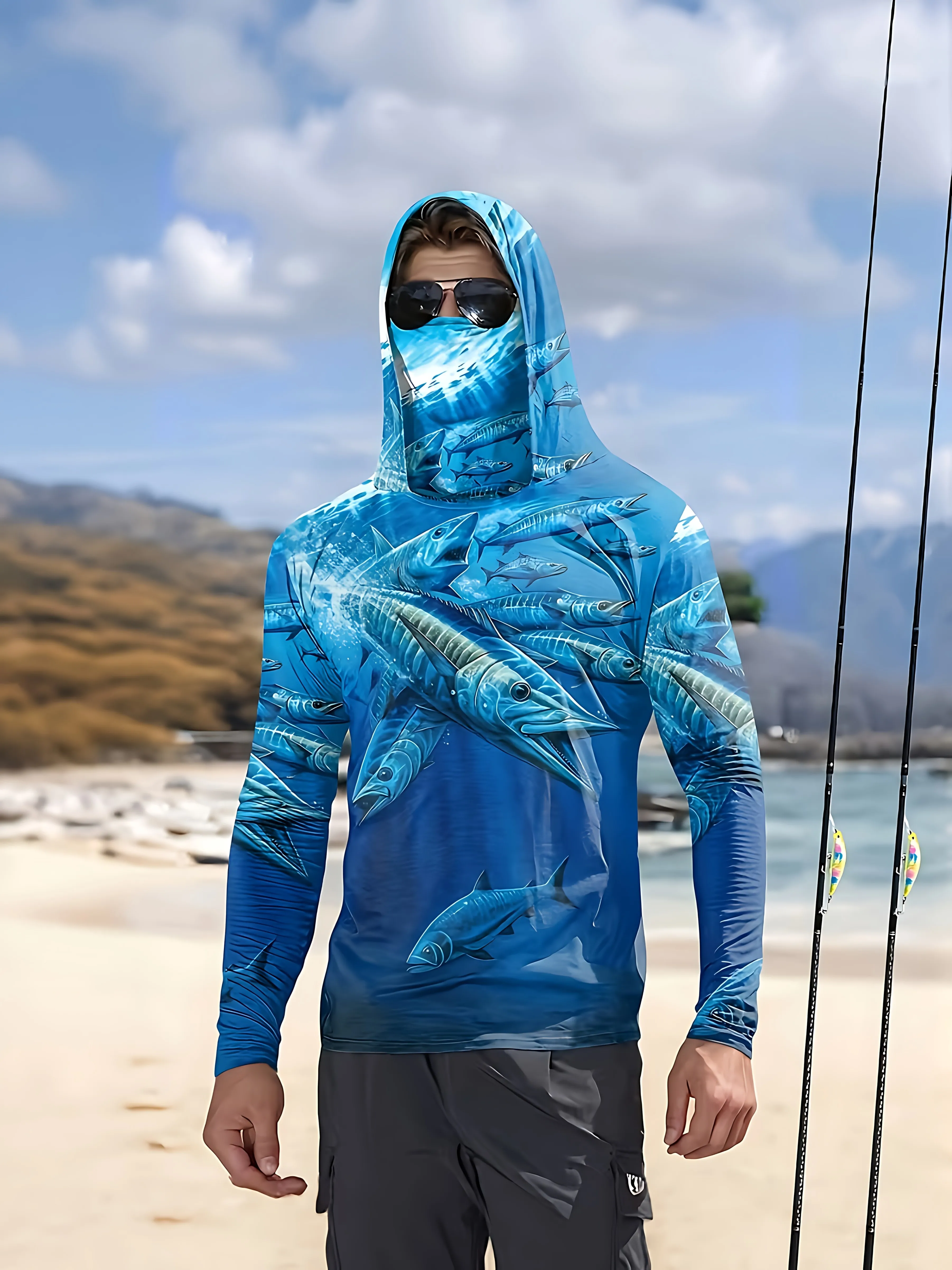 Chemise de pêche à capuche pour hommes, vêtements de pêche d'extérieur, masque d'été, sweat à capuche, protection solaire UV, jersey performant