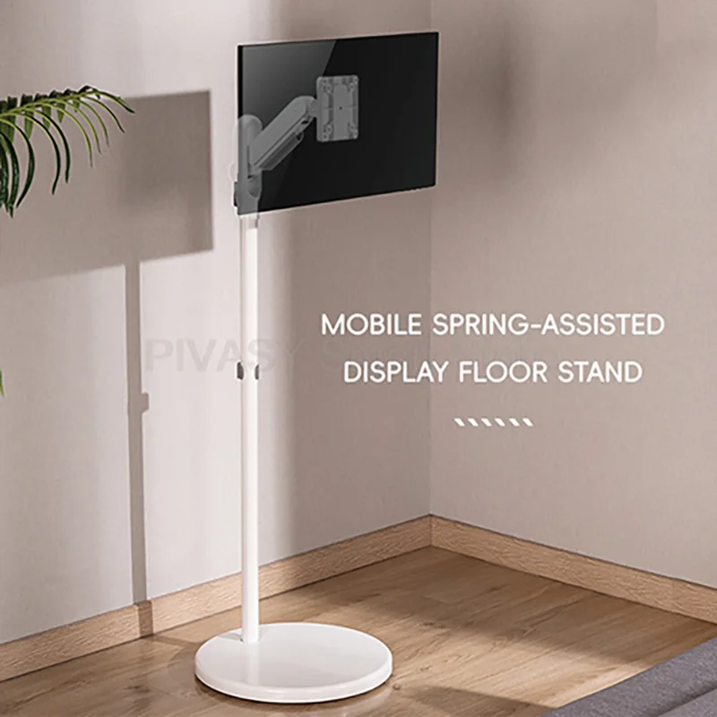 Meuble TV 10-46 pouces Mobile Blanc 360 ° Support d'ordinateur rotatif Vertical, support de sol pour écran, multifonctionnel réglable