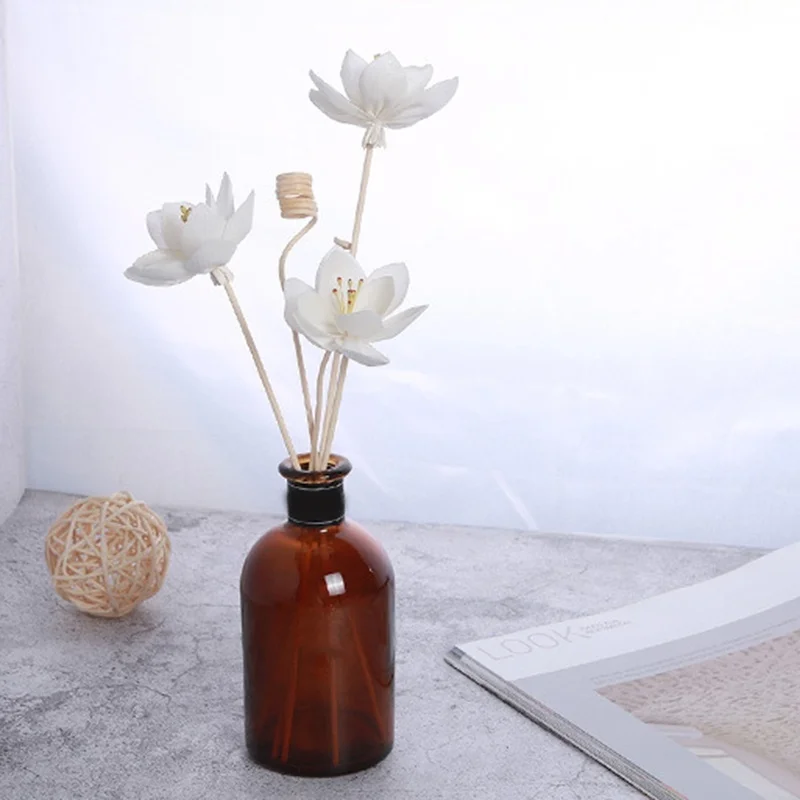 Diffuseur de fleurs de thé en corde de coton, tête de fleur réaliste pour bouteille d'huile, diffuseurs d'arômes, décor de parfum de salle de voiture, de bureau et de maison