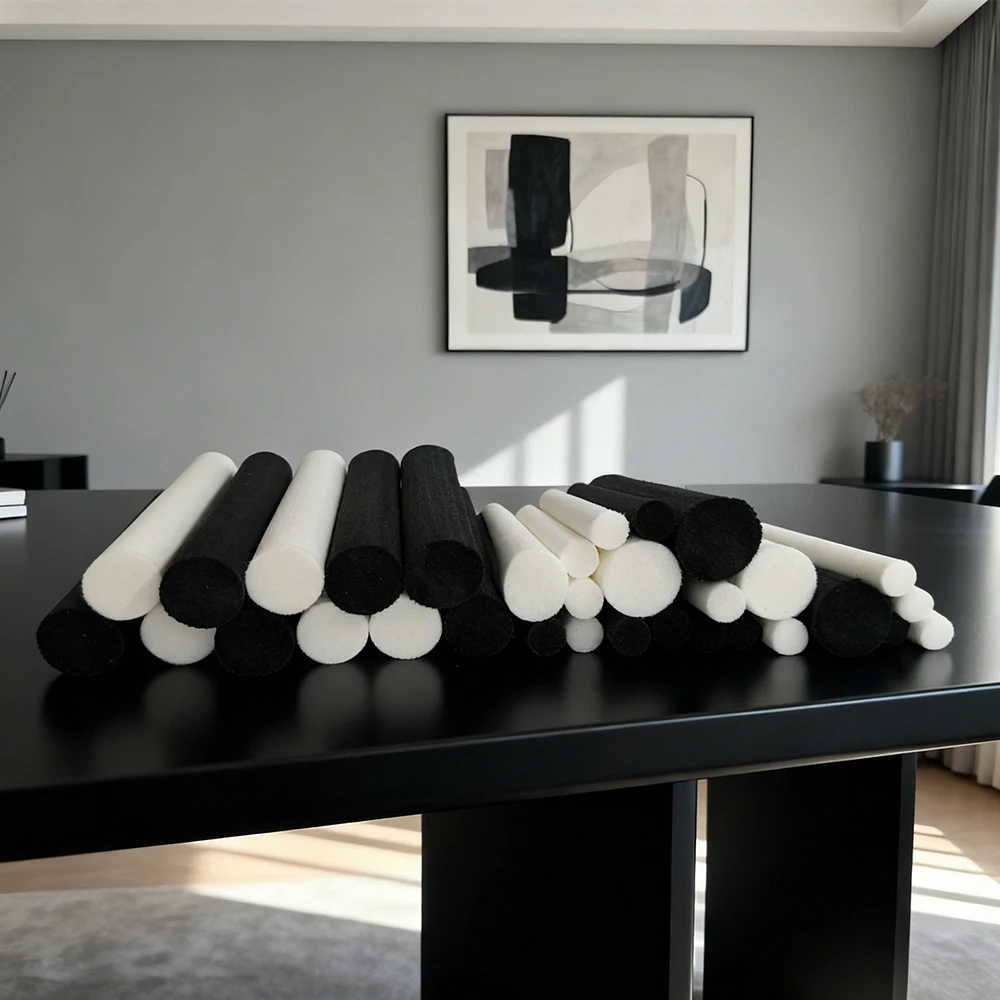 Lot de 50 tampons filtrants en coton noir et blanc de 12 cm × 10 mm - Mèches de remplacement à haute absorption pour humidificateur USB et diffuseur d'arômes