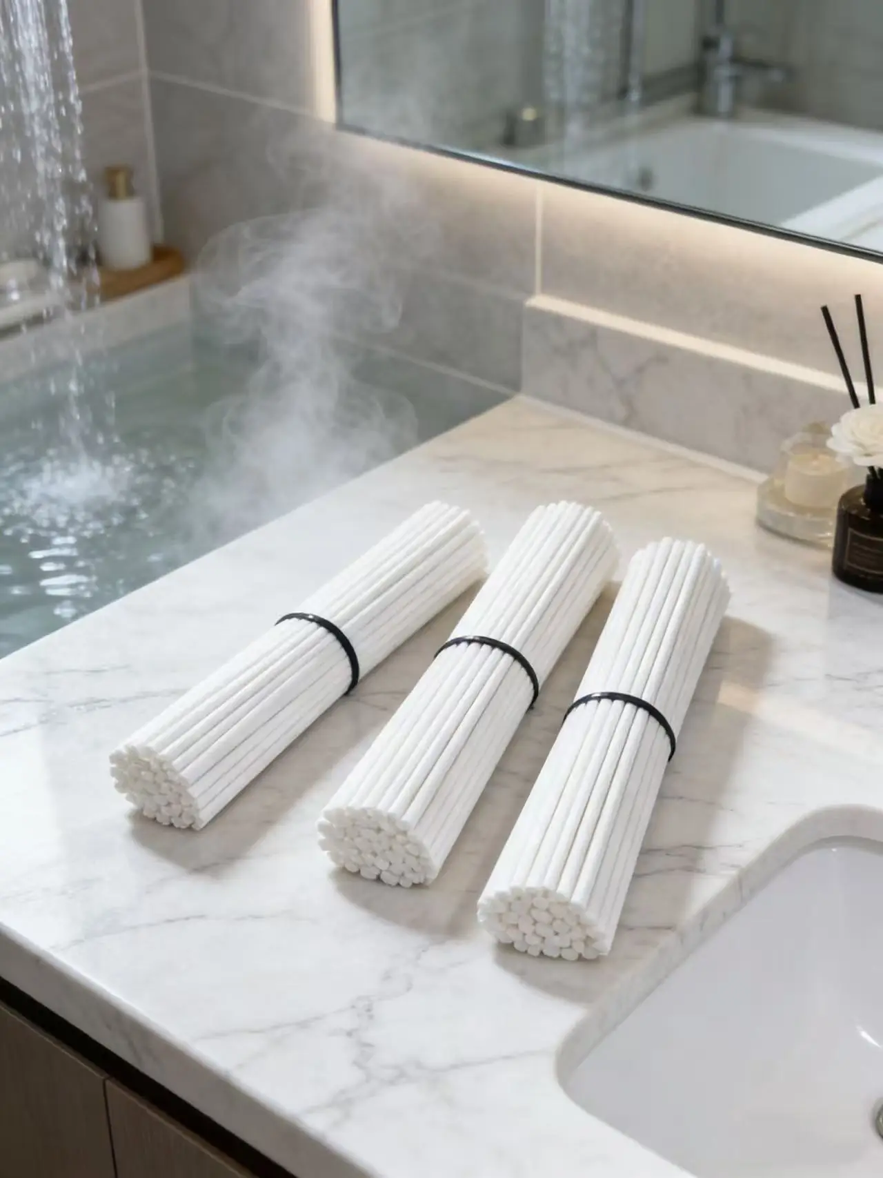 1000 bâtonnets de rotin en fibre blanche de 25 cm x 3 mm - Bâtonnets de recharge en vrac pour diffuseur de parfum, huile de parfum pour la maison, désodorisant d'air