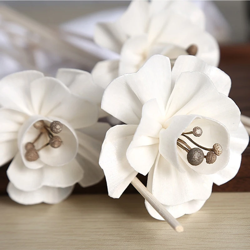 30 pièces de diffuseur d'arômes, fleurs en rotin blanc, bâtonnets artificiels en roseau, décoration de table, diffuseur d'huiles essentielles, décoration de la maison