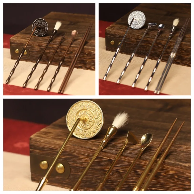 Ensemble de 5 ustensiles à encens en cuivre argenté antique, cuillère/pelle/gris, outil d'encens scellé pour la maison, extension intérieure
