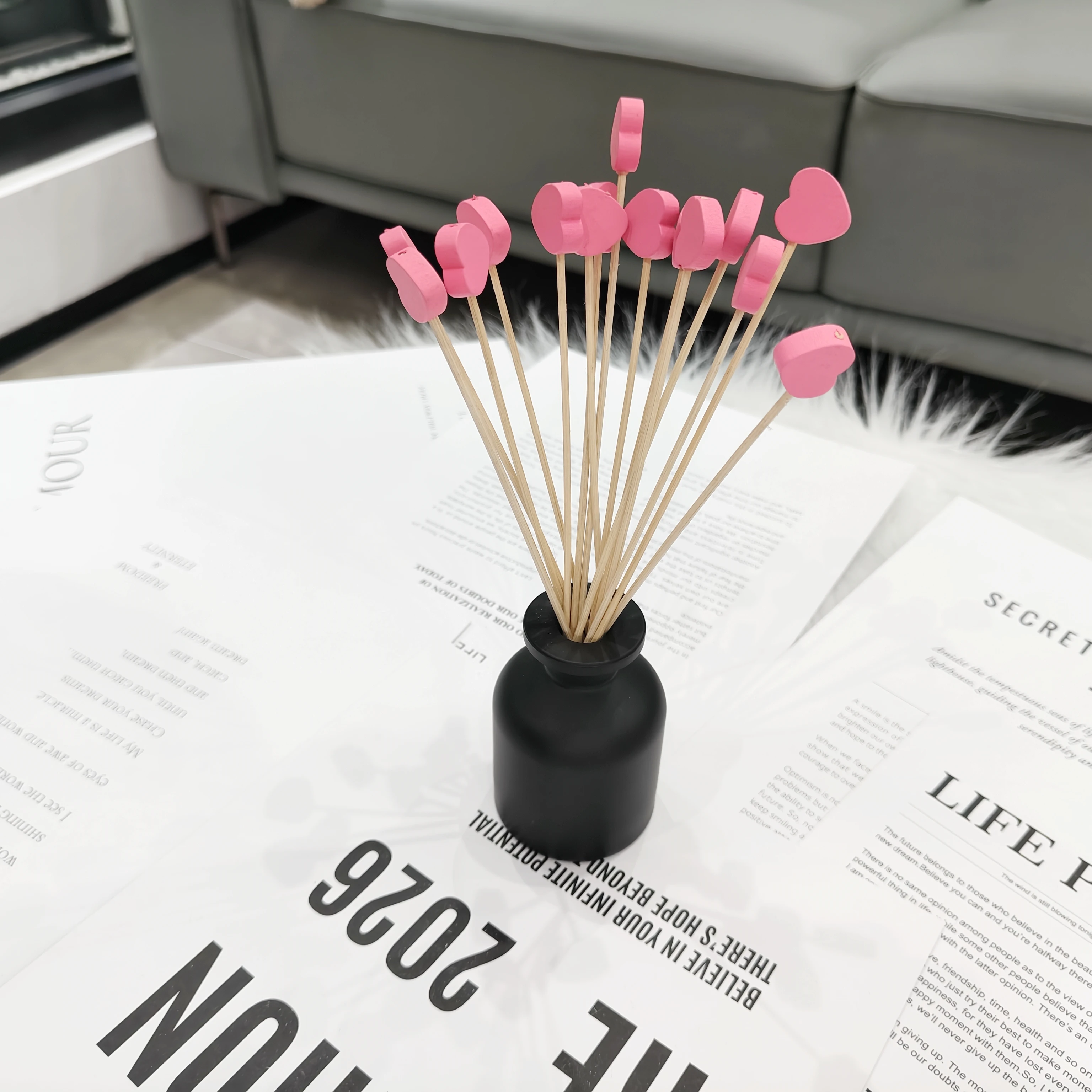 Bâtons de diffuseur de roseaux en rotin en forme de cœur, recharge d'huile essentielle sans flamme pour la saint-valentin, décor de parfum DIY pour la maison et le bureau, 6 pièces