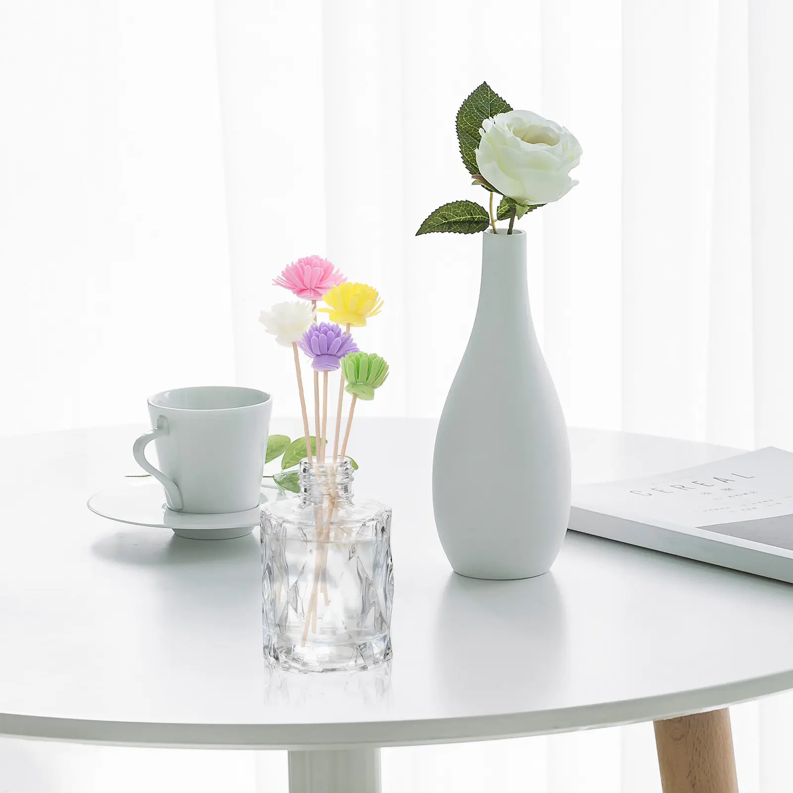 Lot de 4 diffuseurs de parfum sans flamme en forme de fleur avec mèche en coton, diffuseur d'huiles essentielles artificielles pour aromathérapie