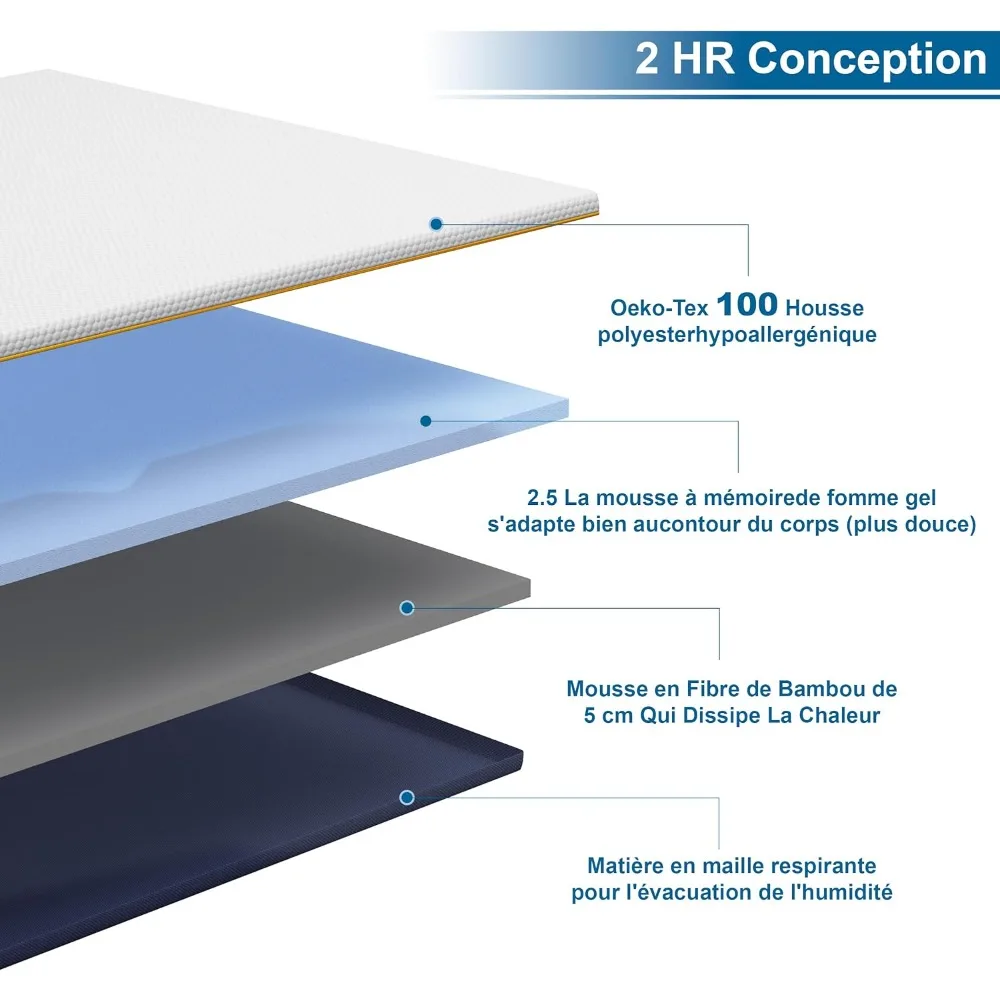 Surmatelas 140 x 190, épaisseur 7,5CM, Surmatelas en Mousse à Mémoire de Forme Gel, Mousse en Matériau Bambou, évacuation d