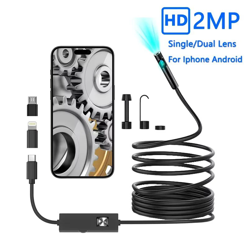 Caméra endoscopique à objectif simple/double, pour iPhone iPad IOS Android type-c, caméra d'inspection endoscopique à lumière LED pour usage industriel