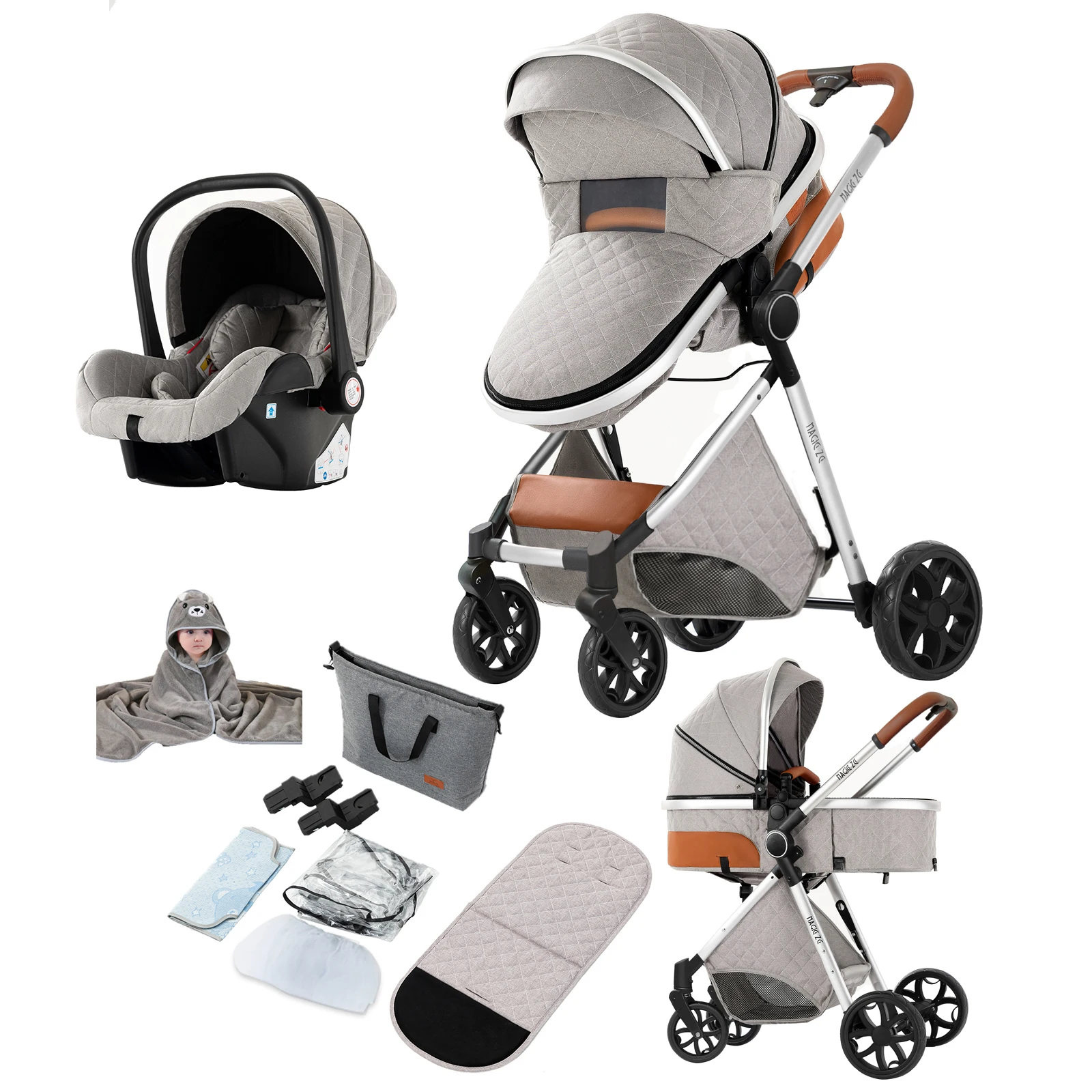 Poussette bébé 3 en 1 avec couffin et mode siège auto, harnais 5 points, conception pliable à une main et légère pour un rangement compact