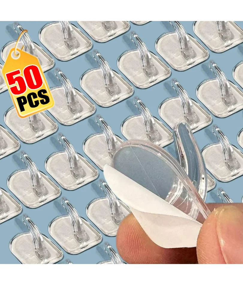 Mini crochets muraux transparents auto-adhésifs, 50/100 pièces, crochet de décoration murale, organisateur de rangement pour la maison, la cuisine et la salle de bains