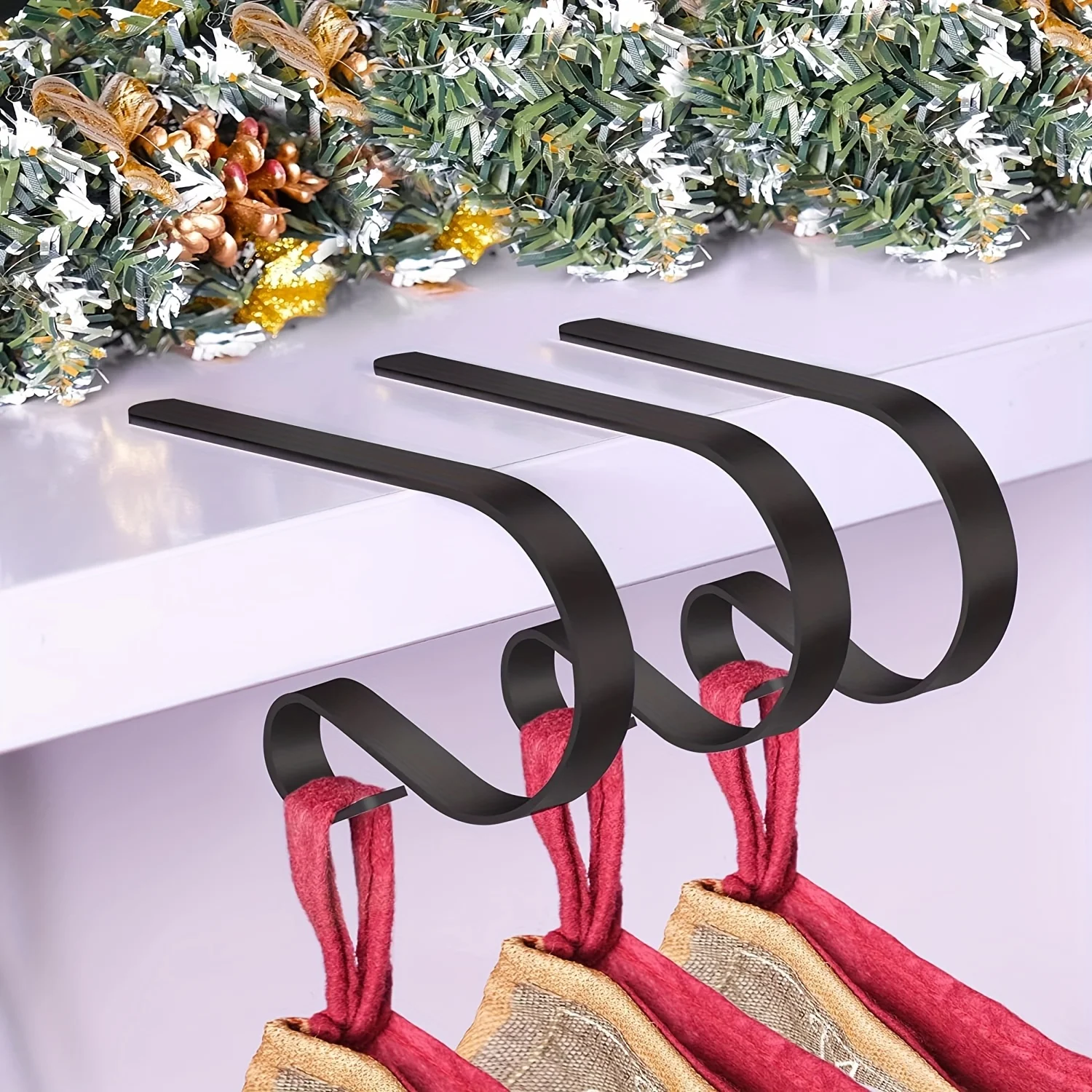 Supports de bas en fonte robustes, crochets en S incurvés, cintres de bas de noël/vacances avec Clips robustes, 4 pièces