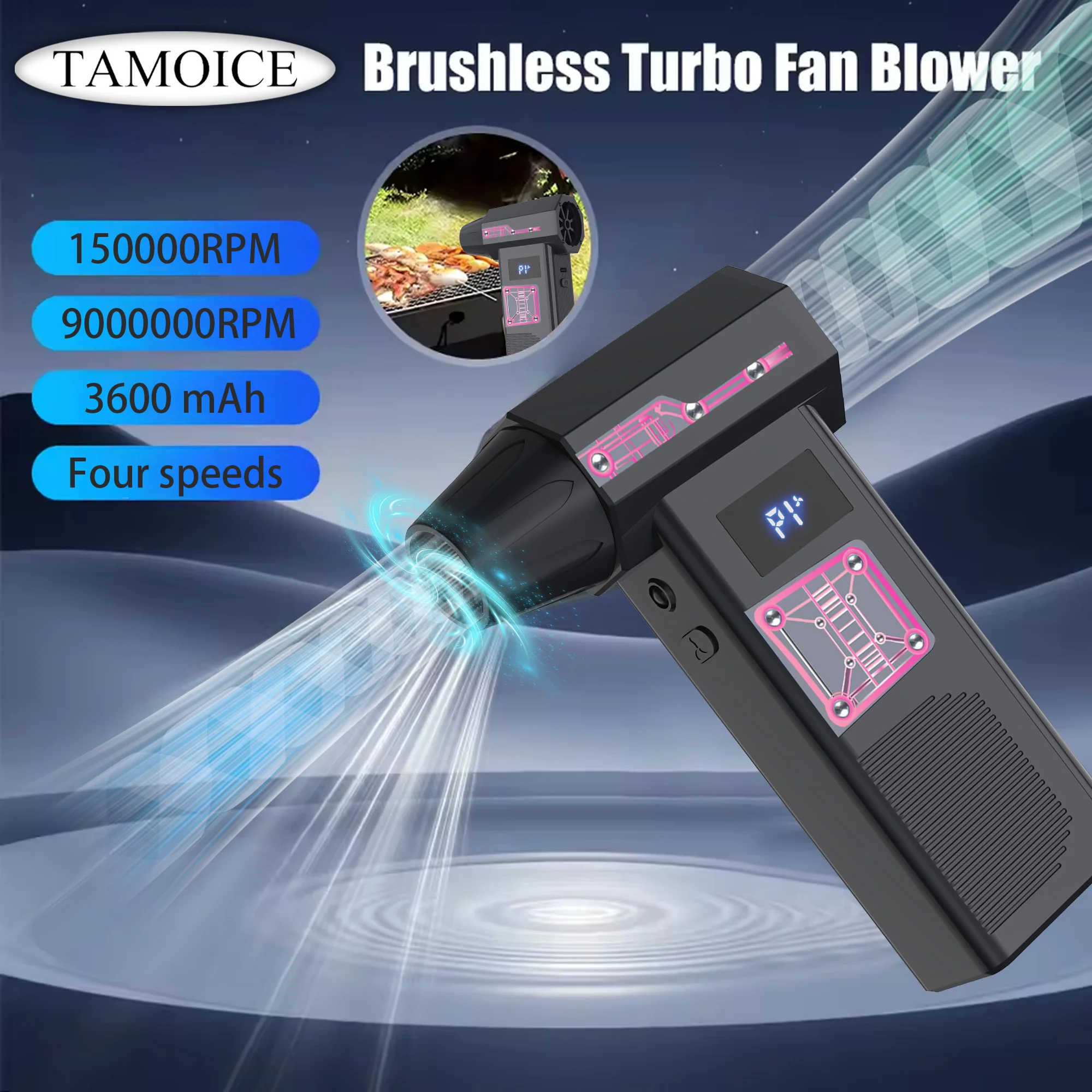 Mini ventilateur électrique 130000 tr/min, souffleur d'air réglable, ventilateur portable, souffleur puissant, rechargeable, pour le nettoyage de voiture
