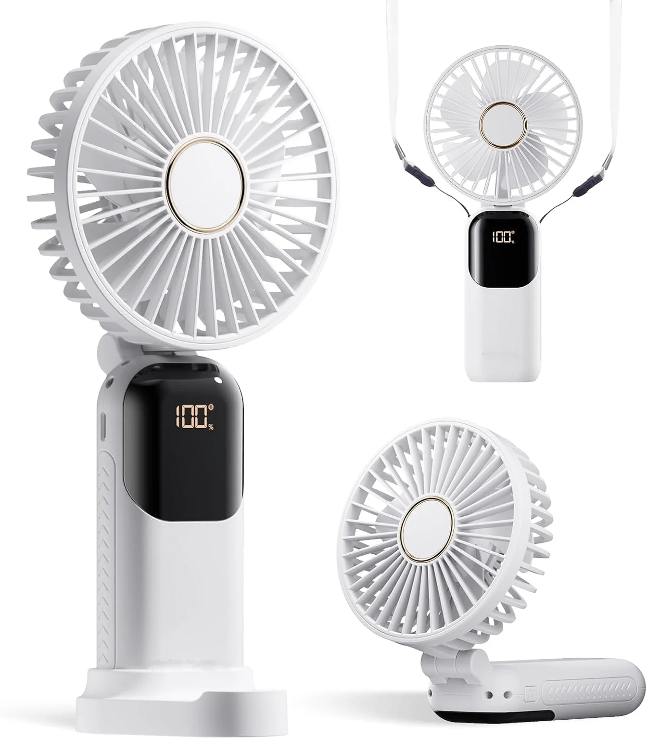 Mini ventilateur portable 3000 mAh pliable, pour bureau, extérieur, à suspendre au cou, 5 vitesses, rechargeable USB, support de téléphone, écran d'affichage