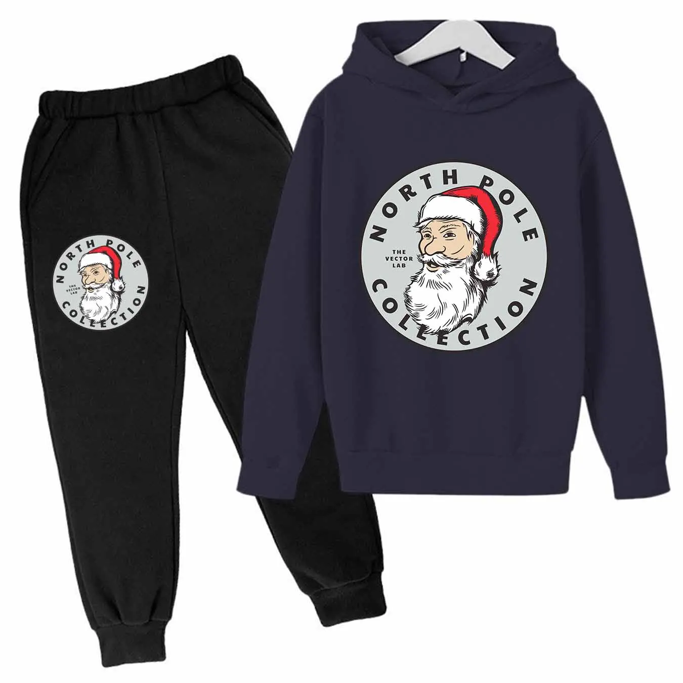 Ensemble de survêtement 2 pièces pour garçons et filles, imprimé Père Noël, sweat à capuche + pantalon, collection Pôle Nord pour enfants, tenue chaude pour cadeau de Noël